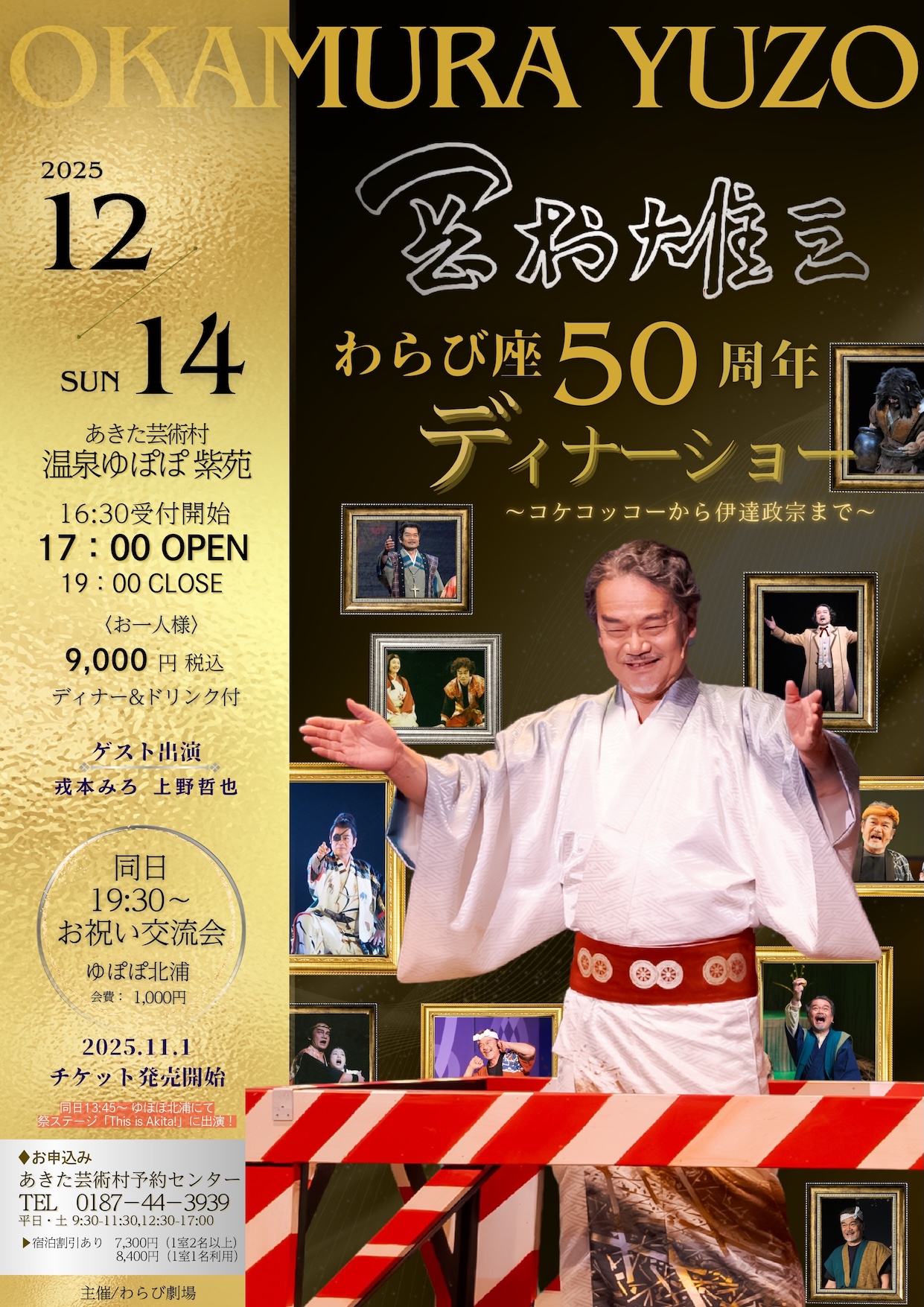 ★岡村雄三わらび座50周年記念★ディナーショー開催決定![12月14日公演]