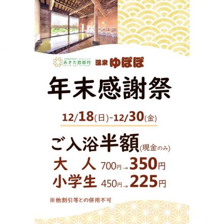 【入浴半額】温泉ゆぽぽ 年末感謝祭[12月18〜30日]